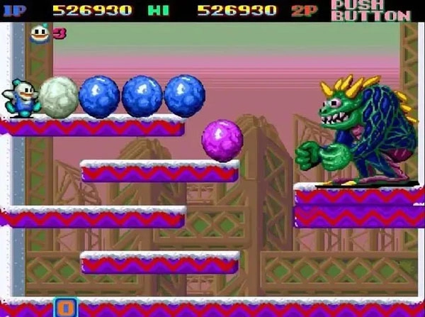 3、《雪人兄弟》有个挺有意思的设定:玩家只要撑够一段时间就能直接通关,打不打死BOSS都不影响。我试过不清掉杂兵,直接跳到BOSS身后用普通攻击,结果拖到通关BOSS都没被打死——这说明BOSS说不定没法用子弹击杀?但事实真的如此吗?