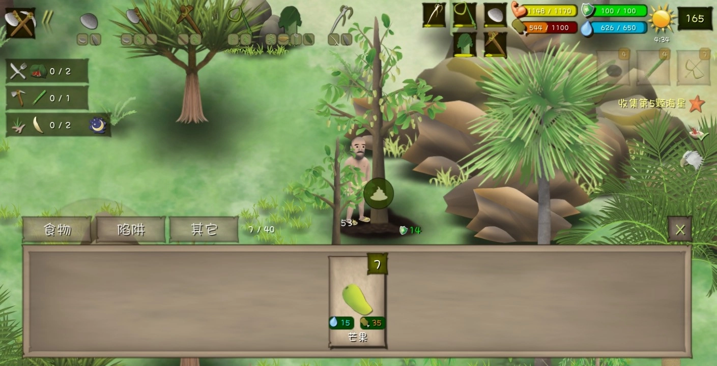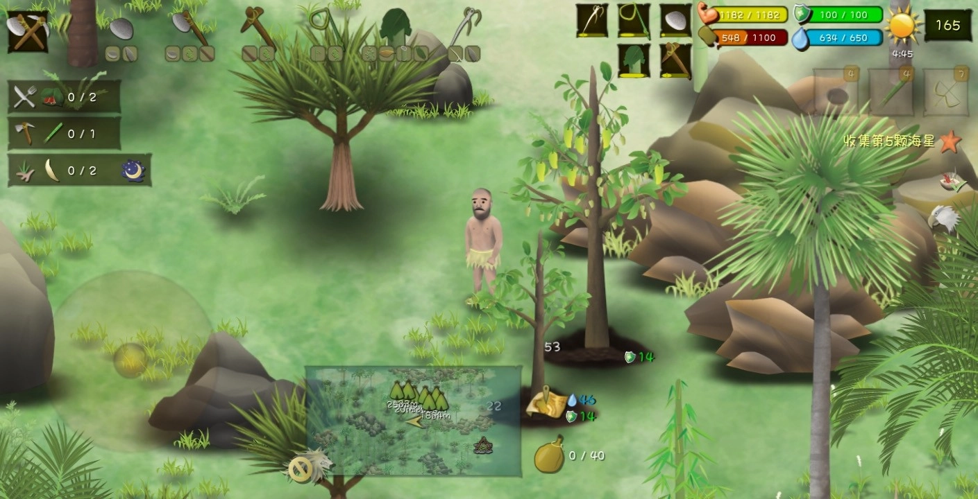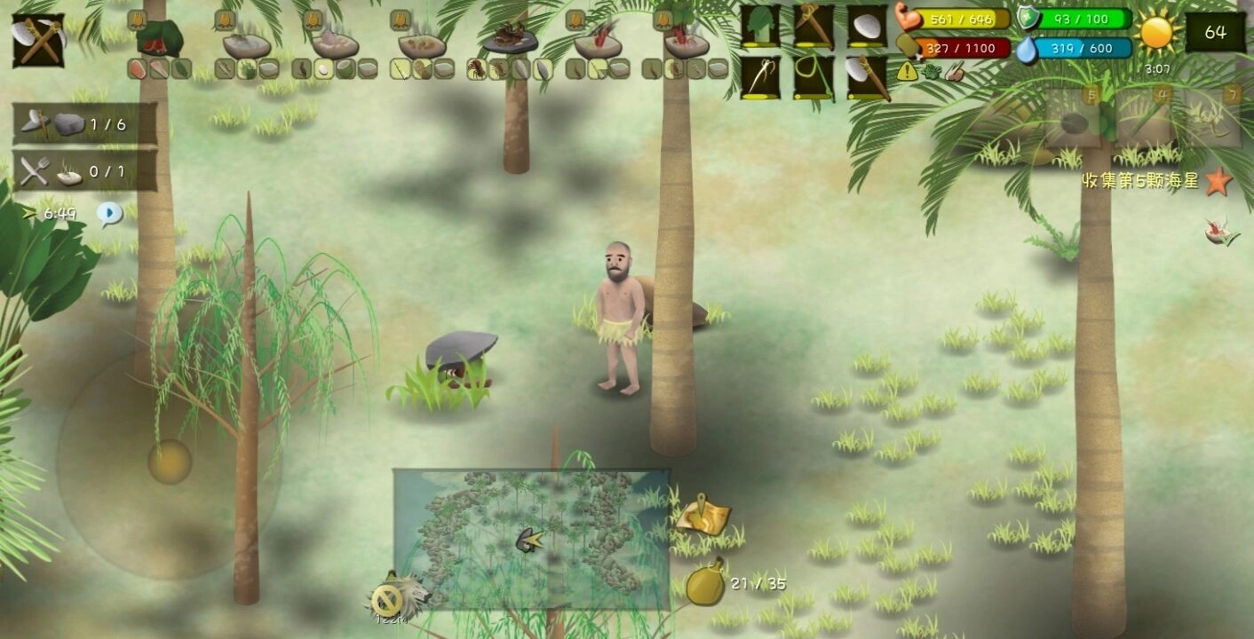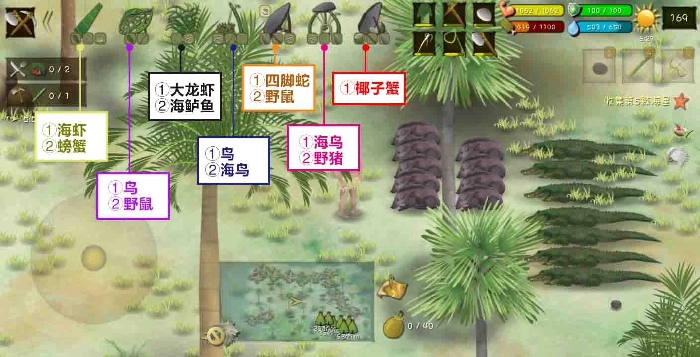 前期可以摘椰子、捞海草、捡贝壳,还能打四脚蛇、捉螃蟹,或是挖芋艿、挖竹笋、掏鸟蛋。