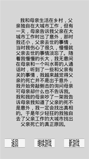 这部作品画面十分简约,却通过文字互动的形式让玩家得以参与剧情交流;内容里不仅设置了多样的特色剧情选择,你还需要探寻父亲离世背后隐藏的真相。