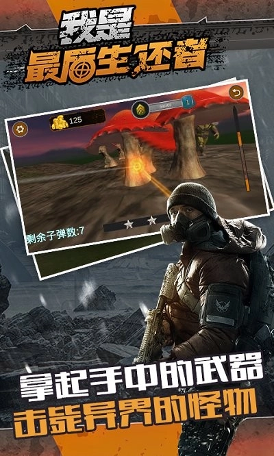 我是《最后生还者》游戏,采用3D引擎打造的真实吃鸡玩法,以第一人称视角展开,你可以搜集各类装备,通过精准射击消灭敌人,成功舔包后向着“吃鸡”目标前进,尽情体验射击带来的乐趣。还能和小伙伴组队开黑!喜欢这类游戏的话千万不要错过哦!