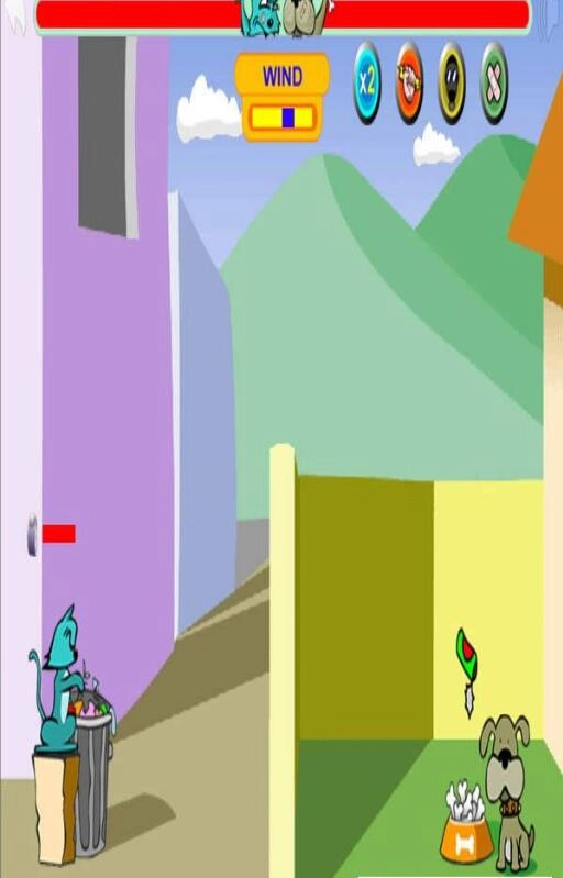 游戏里的狗与猫会利用各种各样的道具和武器相互投掷,而你要操控另一场战斗。