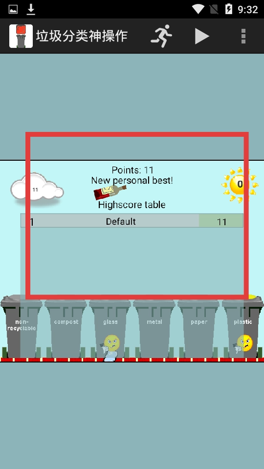 游戏结束后,界面会呈现得分、个人最佳成绩与排行榜,还能查看此次垃圾分类的成果,点击即可继续挑战新的一局。