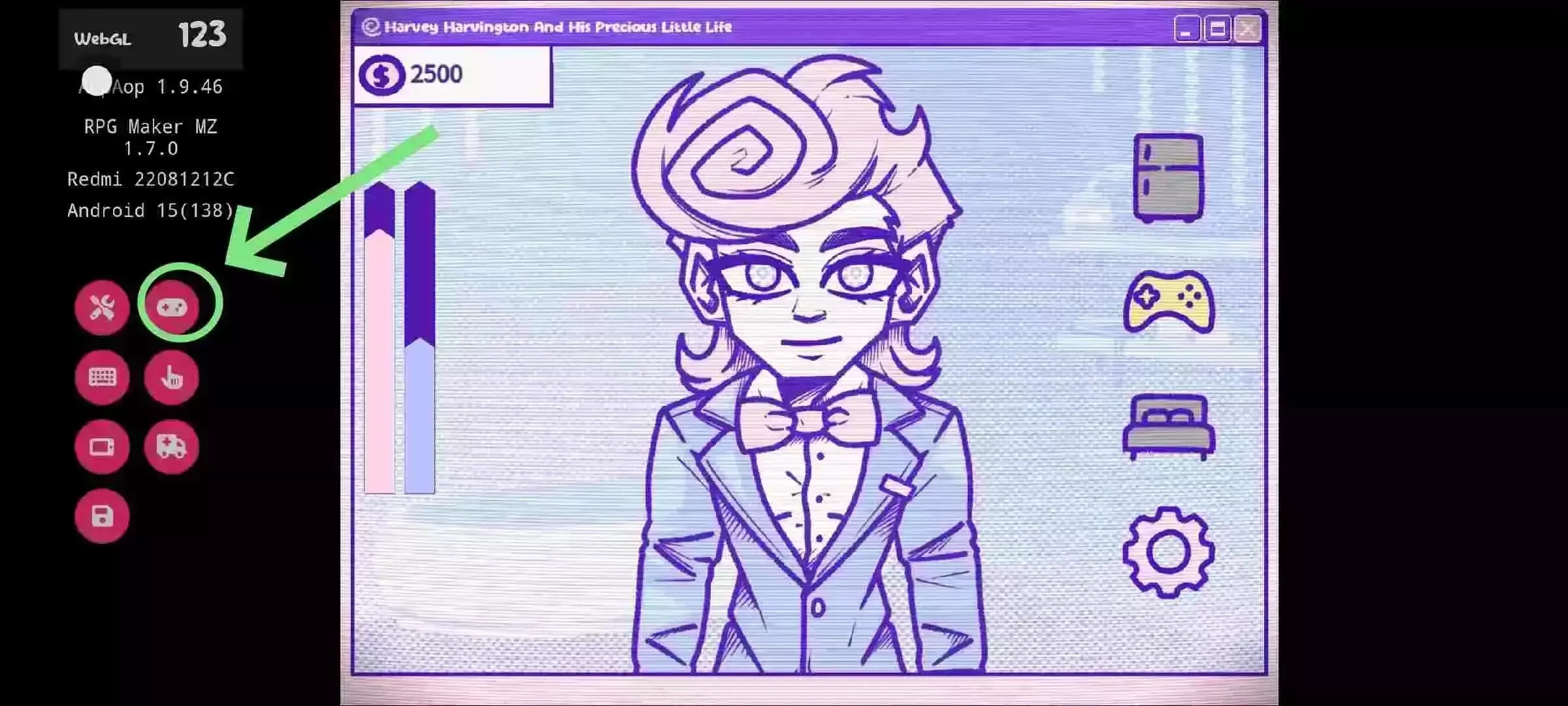 提示:游戏中的小游戏打地鼠需要开启左侧悬浮球中的虚拟按键才行。