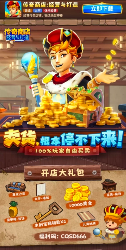 您是城镇中初来乍到的工匠,打造、建设并发展属于您自己的中世纪商店,将其壮大为一个史诗般的奇幻帝国!为您的店长塑造个性化形象,设计您的店铺,制作传奇物品并出售给英雄们,换取更多战利品。与铁匠、裁缝、女祭司、木匠和草药师倾力合作,进行制作和建设,并扩展您的业务!