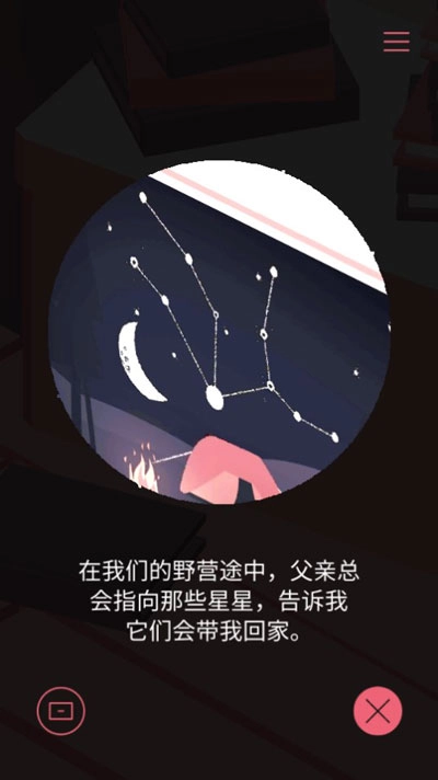 转动房间的视角,点击墙上那幅野营主题的图画,把图画里的星座形状记下来。
