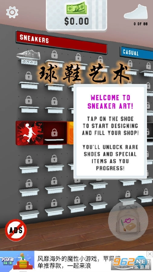 这是一款相当有意思的休闲游戏,玩家可以在游戏里亲自设计球鞋,挑选各种心仪的色彩与元素进行搭配,让鞋子更具艺术气息!