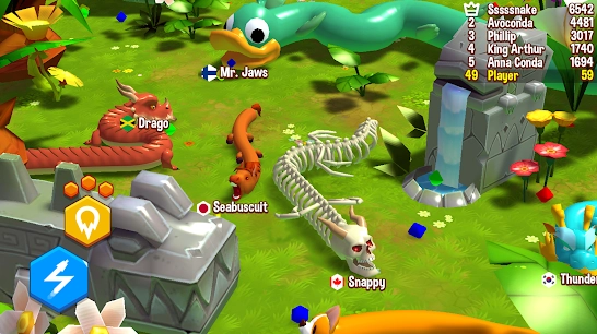 2. 多样的游戏道具:玩家能够借助持续吞食食物与道具来提升自身能力,像冰冻效果、带毒食物、毒蛇之类的都包含在内。