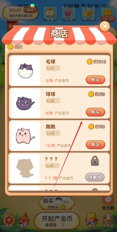 3、通过合成猫咪可以出售来赚钱