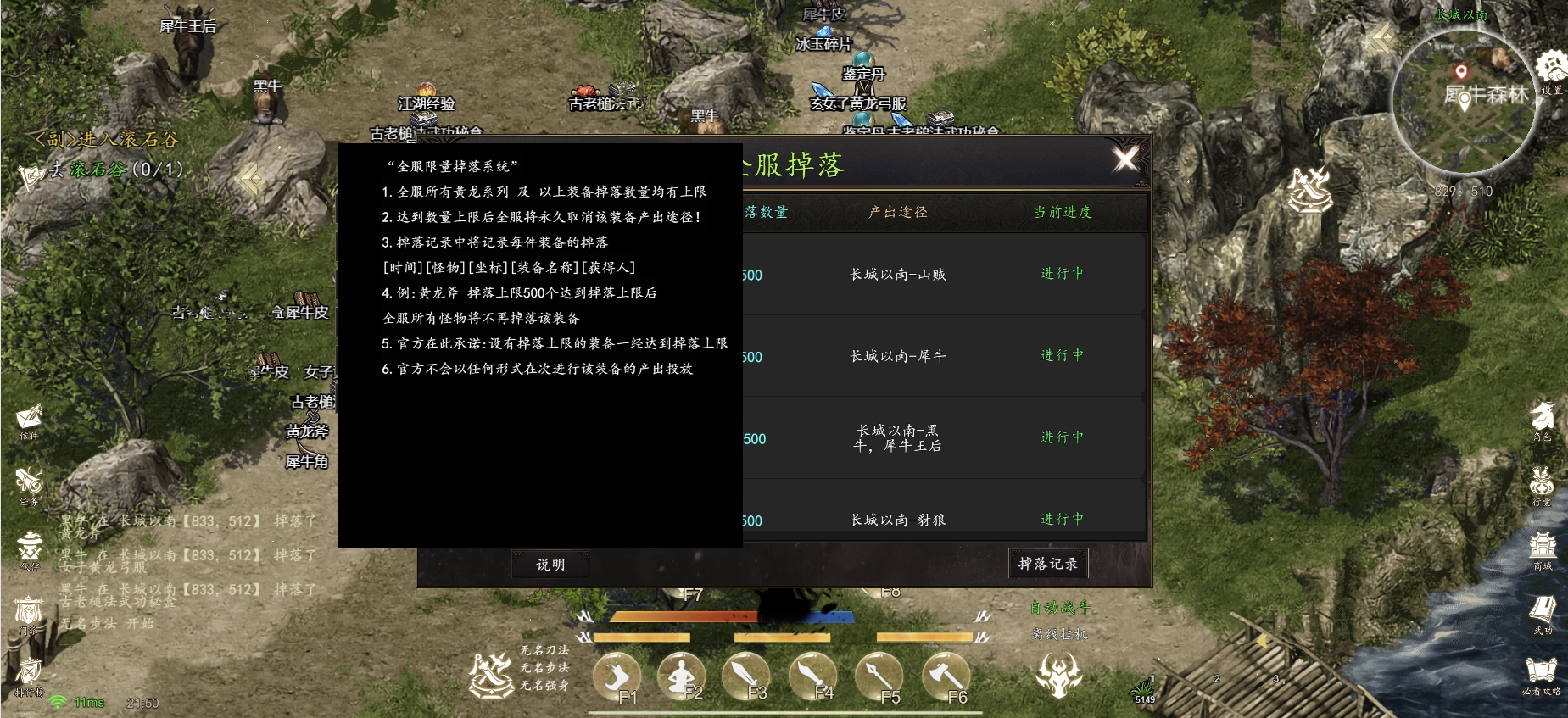 1、全服范围内,所有黄龙系列及更高级别的装备掉落数量均设定上限,一旦达到该数量上限,全服将永久停止该装备的产出渠道!