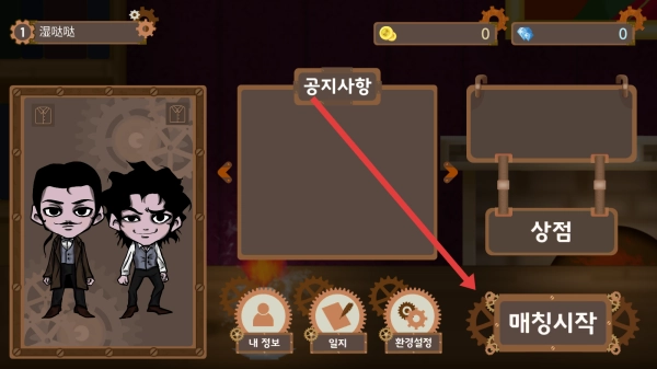 进入游戏主页界面后,可根据箭头提示,点击右下角的매칭시작按钮,以此启动游戏匹配流程。