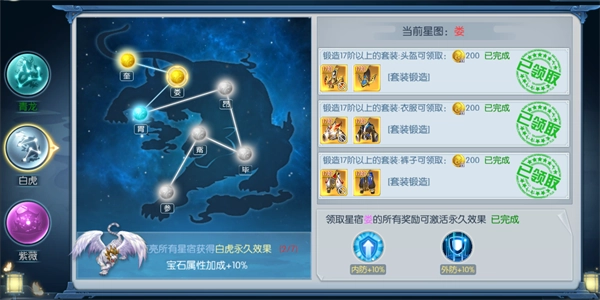 星图是个能获取大量仙币的好去处,特别是白虎星图,每颗星都能带来一千多绑定仙币的奖励。