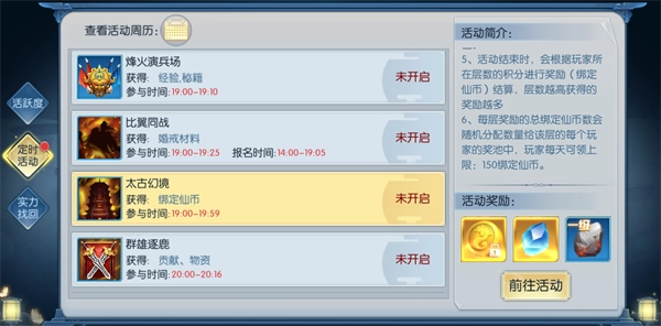 每周日的7点到8点,只要参与活动,基本都能拿到最多150个绑定仙币,这是个稳定获取的途径。
