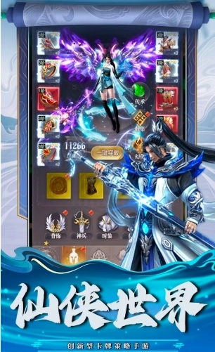 1、游戏突破传统框架,以卡牌组合为核心策略。玩家可自由收集培养仙侠角色卡牌。