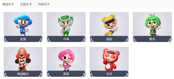 游戏中包含黑妞、皮蛋、小乖、洋葱头等大家熟悉的角色。不仅如此,各类车手都可以进行皮肤装扮,当你解锁各种主题皮肤后,能让角色显得更加炫酷。