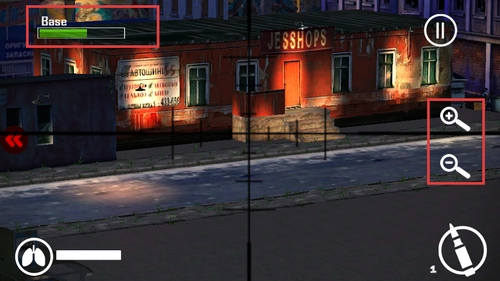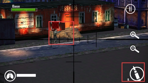 在执行狙击任务时,通过瞄准镜锁定目标敌人,随后点击射击按钮,以此达成精准打击的效果。