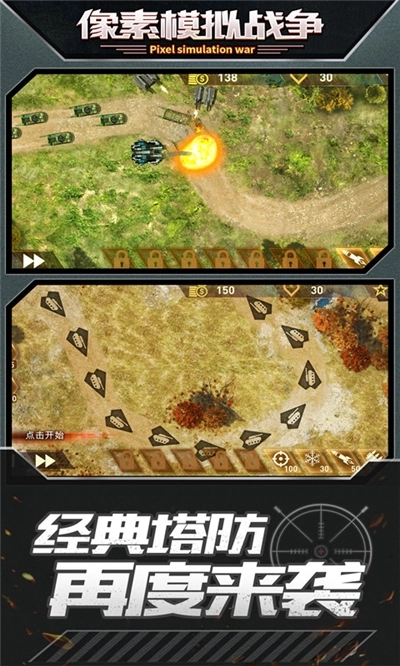 像素模拟战争是一款极具趣味性的策略塔防战斗游戏,以逼真写实的画面呈现战场的惊险刺激,玩家可自由布置丰富多样的兵种,通过灵活多变的策略布局在战场中展开激烈厮杀,最终主宰战斗的胜利。