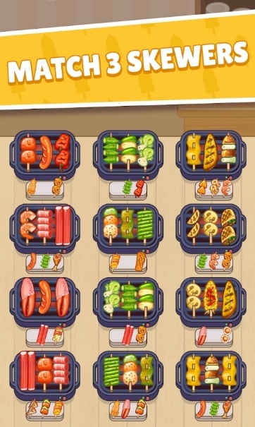 3、玩家能将小串串合成为大烤串,还可解锁更强力的烧烤技能和形态,充满趣味性。