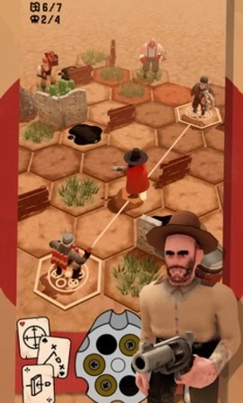 西部对决是一款经典的像素风西部射击游戏,其灵感来源于PC游戏《GUNCHO》,目前已成功移植到安卓手机平台。虽然游戏平台有所改变,但核心玩法并未改动,依旧保持原样。这款游戏的核心机制围绕独特的射击系统构建,玩家通过移动、射击和装填子弹的操作,能够对Guncho左轮手枪的转轮旋转产生影响。想要巧妙战胜敌人,玩家就得借助战术移动,让子弹与六边形网格精准对齐。