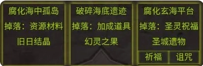 在黄色地点进行探索或破坏获得一种奖励,第一处为亚晶武值或旧日结晶*1,第二处为四种果子之一,第三处为壁垒建设卡、旧日结晶、神圣或腐化遗物。