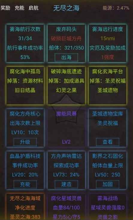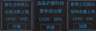 升级建筑可以提高航行次数、成功率和船体值,每0.1%能源也会提高1次航行次数