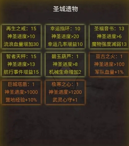 神圣/腐化和遗物 将铁卫装备腐化之眼升至40级后解锁圣城遗物功能,遗物可通过出海探索获取,也可在主页右上角设置中的圣城遗物奖池中使用海豹抽奖券抽取