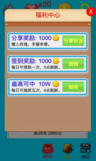 超多关卡待你挑战,获取丰厚收益后,就能顺利通关领取红包!游戏内还设有每日任务哦。