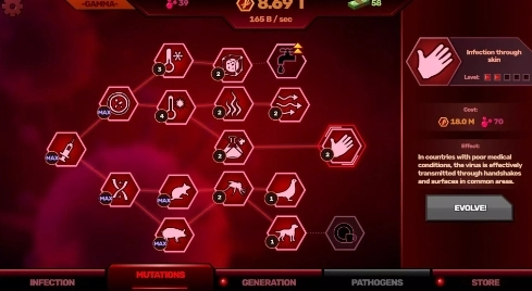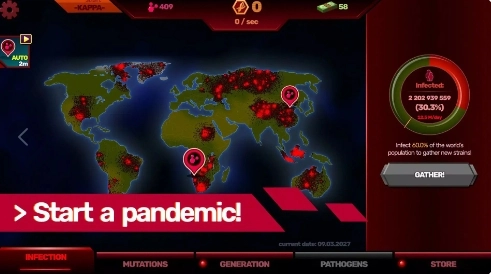 1、玩家扮演病原体(细菌、病毒、寄生虫等),通过传播途径、症状升级和特殊能力,在各国研发解药前感染并消灭全人类。