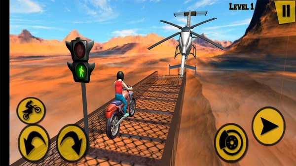 》是一款主打特技操作的模拟游戏,玩家需要在充满障碍与跳板的赛道上灵活操控摩托。既要保持稳定行驶以顺利推进,又得通过完成特技来提升通关分数——当摩托腾空而起时,正是秀出操作的绝佳机会,连续翻转后平稳落地,就能轻松获取额外加分。