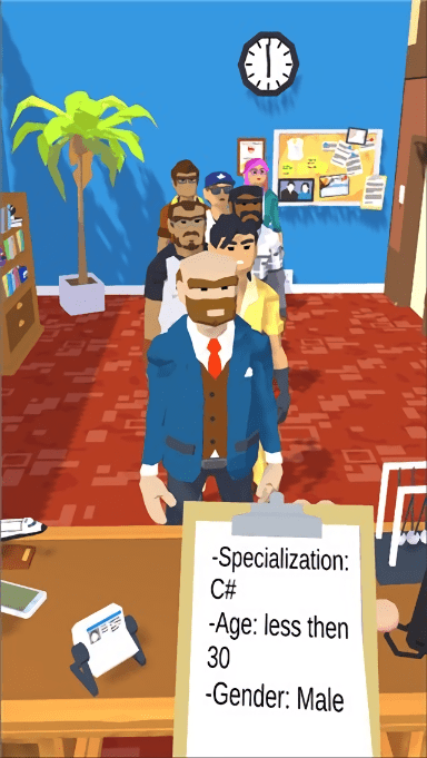 这是一款十分有趣的模拟经营类游戏,玩家在游戏中扮演的角色是人事经理。
