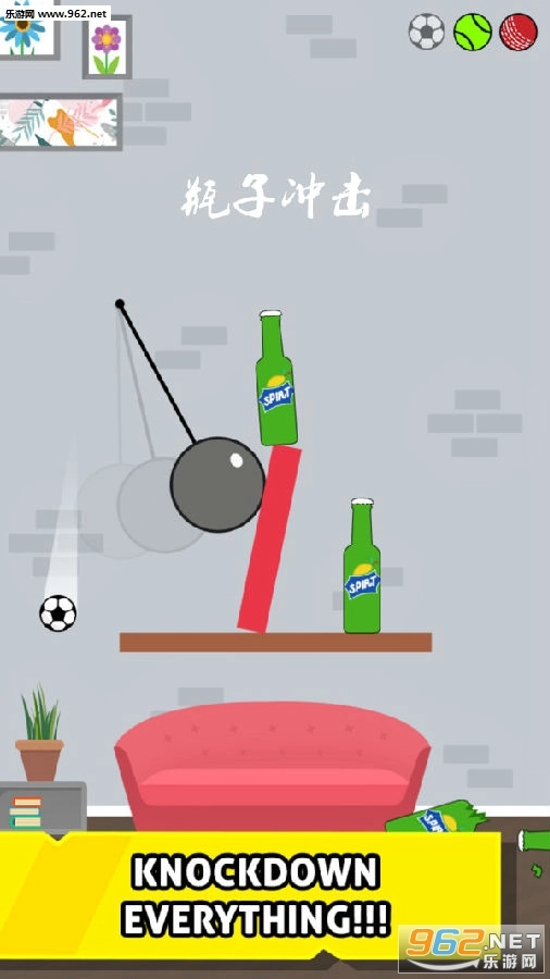 在击倒瓶子之前,玩家要精准计算小球的移动轨迹,并且准确击碎瓶子。