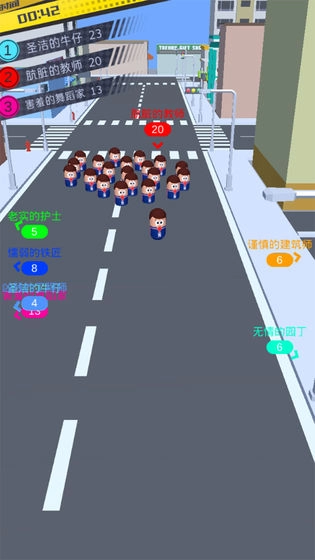 在这座拥挤的城市里,我的一堆小人游戏中,大家各自为战。你也将化身为一位小人首领,目标就是在这拥挤的街道上成为最终赢家。现在你需要做的,就是壮大自己的队伍、扩充人数。马路边有不少无所事事的小人,你可以拉拢他们;当然,你也能攻击并占领规模比你小的队伍。但要切记,遇到比你大的队伍时,一定要果断跑走,避免前功尽弃、从头再来。