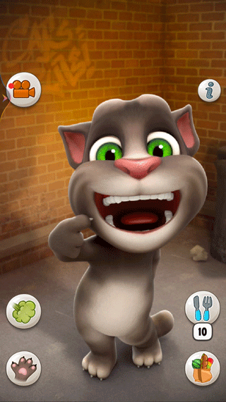 9、按下电话按钮,让汤姆与原版的会说话的汤姆进行游戏,他会用滑稽的声音复述他自己的话。