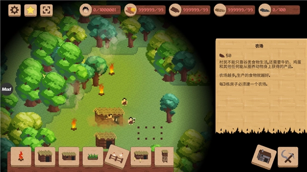 居民居住的地方,房屋越多,租金就越低,每建造3个房子,就可以建造一个农场,当资源不够用了还可以去森林中进行采取。
