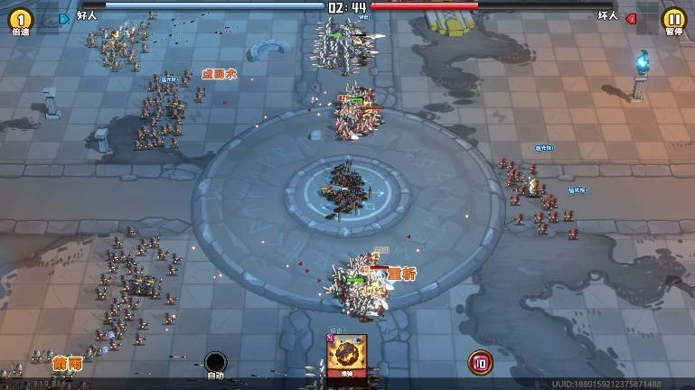 1、该游戏的核心玩法为两军对战,玩家在战斗过程中无需进行实时操作,仅需完成英杰的招募与培养,并在战前做好布阵安排。 2、正式进入战场后,场景如同观看动画,两军自行交战。玩家虽可点击右下角技能图标,但当达到一定等级,便可选择自动出招。