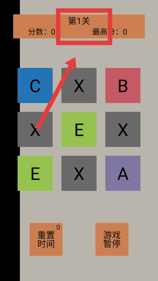 进入第一关后,留意彩色方块的布局,点击字母相同的方块来完成消除操作,统计消除的总数量,力求得到更高分数以解锁后续关卡。