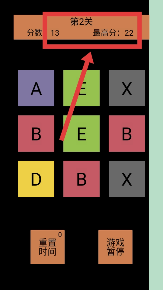 成功通过第1关后,就能进入第2关了。这一关还是沿用之前的消除规则,你需要快速辨认出相同字母的方块并点击它们。同时要留意当前分数和最高分记录,争取让自己的表现更上一层楼。