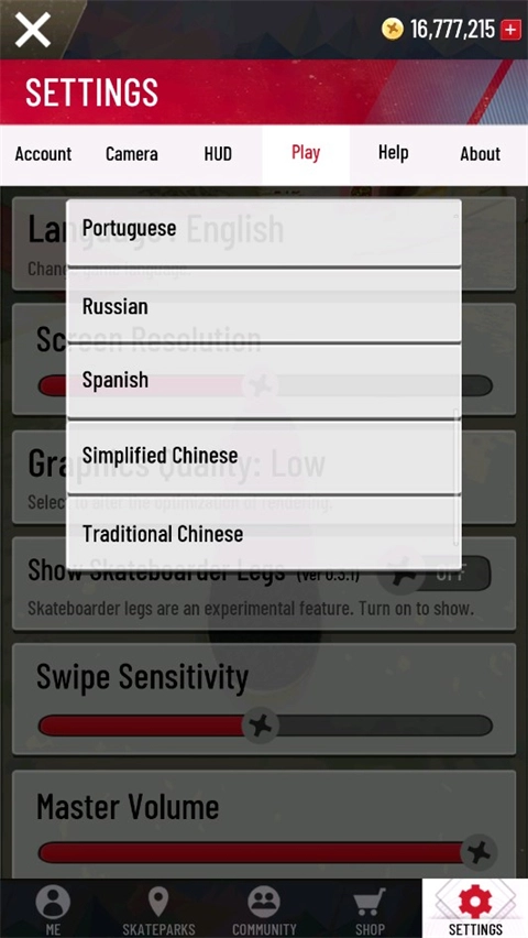 游戏采用3D技术构建滑板运动场景,融入大量自然光影效果,展现出极高的帧率表现。同时,游戏的音效设计十分出色,无论是在路面加速还是金属轨道滑行,都能呈现出不同的声音细节。该版本还支持将游戏语言切换为中文。