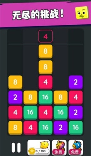 你可以轻松操控带有数字的方块下落,让相同数字的方块合成,以此来腾出更多空间。