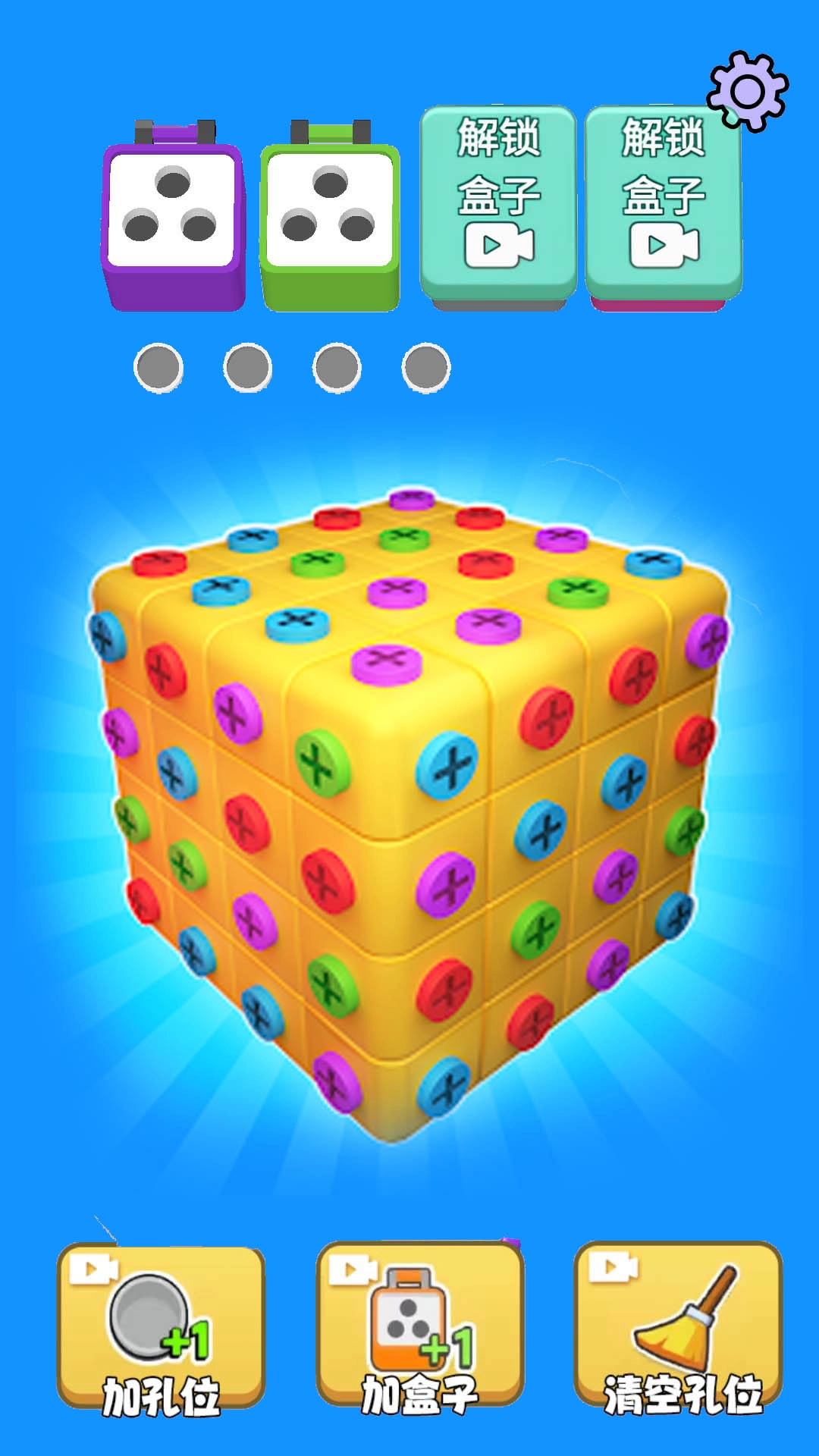 目标设定围绕“消除闭环”展开,螺丝要匹配盒子的颜色,当盒子的三个空位被填满后就会消除,整个逻辑链条清晰明确。