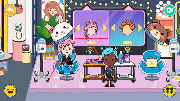 为前来做发型的顾客制定发型,拖动角色到椅子上;