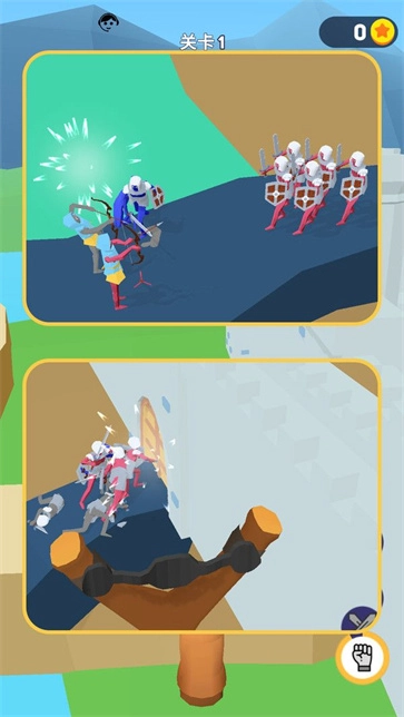 松开手指后,弹弓会发射出玩家选择的弓箭或士兵。