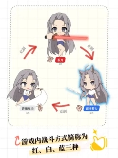 只要你会石头剪刀布,就能学会游戏基础战斗方式!游戏内战斗方式简称为红、白、蓝三种。