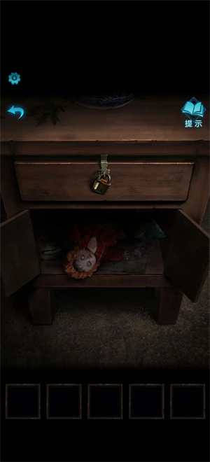 4、右侧柜子的抽屉里空空如也,第二层放置着一把挂锁,因此我们得寻找一把小钥匙。