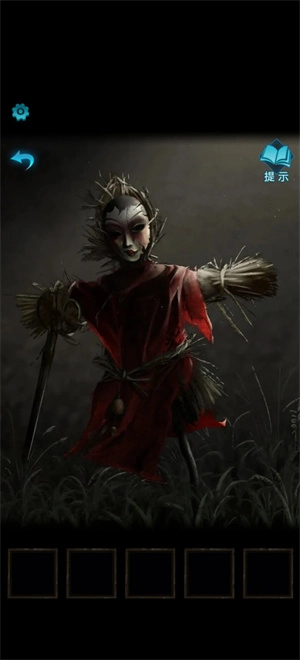 14、注意啦,查看稻草人时会有高能情况出现,查看之后能拿到一条长长的红色飘带,这飘带难道就是传说中绑住自己和女友的红线嘛~感觉有点粗呢。调查稻草人会发现,完好的那一边有把长剪刀,另一边的稻草都没了。咱们这么善良,怎么会不(敢)帮它呢?从稻草人处退出来同样会出现高能场景,能看到花轿,不过花轿不会靠近,所以不用害怕。接着拿着绳子来到下方中间的铡刀处,把绳子切成三段,然后点击绳子,再点击右边的稻草堆,这样就可以不玩小游戏,直接获得一捆稻草啦。之后直接来到稻草人那里,把稻草给稻草人装上,就能拿到剪刀咯。