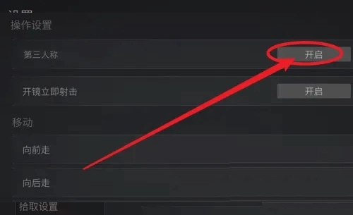 3、最后,在操作设置页面点击开启第三人称即可。