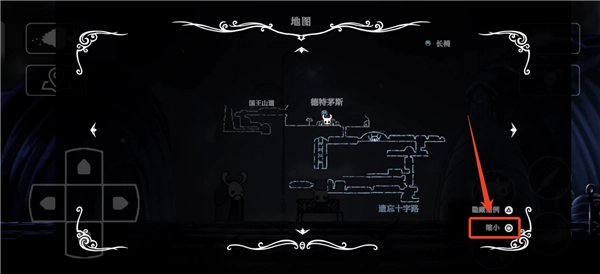 2、之后我们双击左上角的地图按钮,打开地图点击地图右下角的【缩小】。
