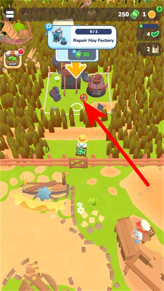 1、在游戏界面里找到修复干草工厂的提示,使用30个对应道具来完成工厂的修复工作。
