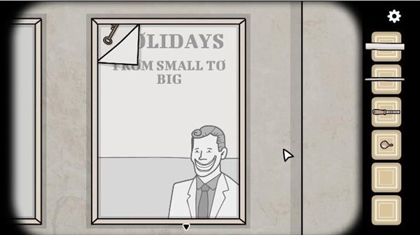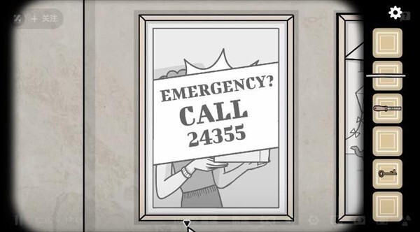 3、回到母女身边,向右切换场景,点击墙上的海报,会看到“从小到大”的提示,接着按照这个顺序依次点击海报里的物体,完成操作后,就能在海报左上角获取一把钥匙。