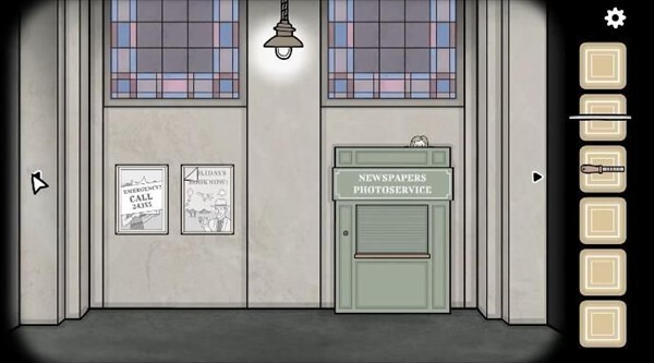 9、前往海报旁的照相馆,装上把手后拉开帘子,得到报纸。将报纸递给坐在长椅上的男人,趁他看报纸时点击他右侧的口袋,获取硬币。