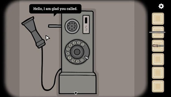 6、回到母女身边,发现劳拉不见了。点击右侧的电话亭,用钥匙打开门,接着拨打24355,结果发现需要一枚硬币。
